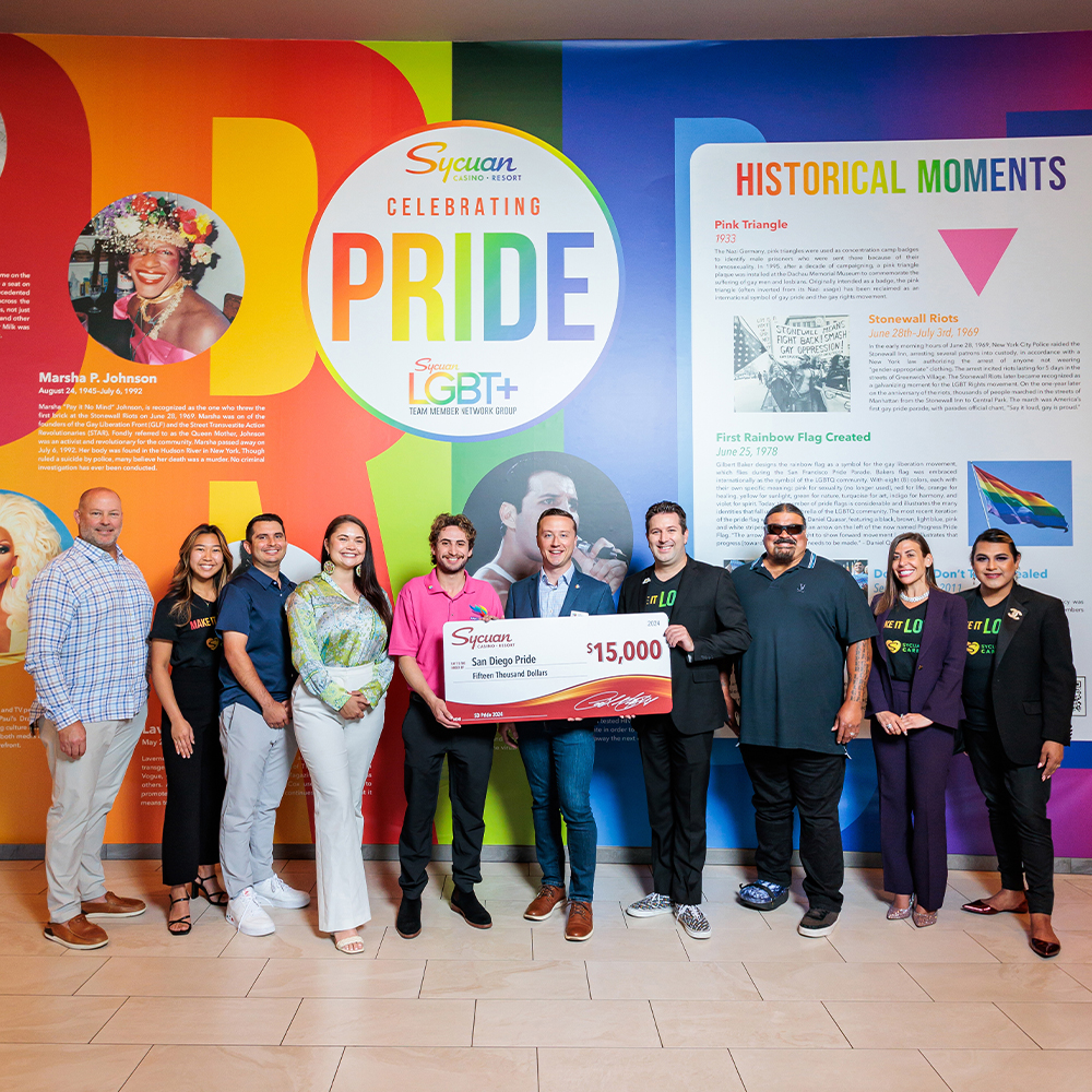 To support the LGBTQIA+ community, Sycuan Casino Resort donated $15,000 to San Diego Pride on Friday, May 31. The donation helps foster pride, equality and respect for all lesbian, gay, bisexual and transgender communities locally, nationally and globally – a world free of prejudice and bias. The donation also helped fund the San Diego Pride Parade and Festival.