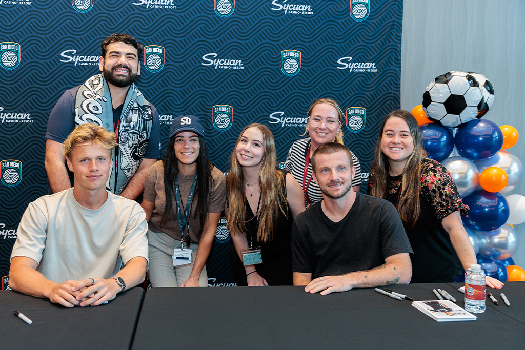 Sycuan Casino Resort Celebrates San Diego FC’s Second Year Kickoff March 5, 2026 Sycuan Casino Resort Celebrates San Diego FC’s Second Year Kickoff Team members show their pride and support to win SDFC prizes In February, Sycuan Casino Resort gathered its employees to celebrate the season kickoff of San Diego FC’s second year. From shooting goals to enjoying small bites and winning prizes, the Sycuan team shared a moment woven into one—filled with pride, excitement, and support—cheering on the return of San Diego FC. Table of Contents Sycuan Casino Resort Celebrates San Diego FC’s Second Year Kickoff SDFC Trivia SDFC #1 Fan Contest SDFC Team Member Slot Tournament Exclusive Sycuan Team Member Meet and Greet Celebrating San Diego FC With the Sycuan Team Join the Sycuan Team SDFC Trivia As fans got ready for San Diego FC’s first match, Sycuan team members kicked off the season with a game of trivia at the team dining room during lunch. Team members gathered to test their soccer knowledge for a chance to be among the top scorers, who were then entered into a raffle to win a pair of SDFC tickets. For those who couldn’t make it to the event, Sycuan team members still had a chance to participate in the raffle by answering trivia questions online. SDFC #1 Fan Contest With energy still in the air, Sycuan team members shared pictures showing their best San Diego FC gear for their chance to win a pair of tickets to a SDFC match. The top three winners were determined by the amount of likes they received from team members across all departments in Sycuan’s employee app, Muuyawaa. SDFC Team Member Slot Tournament The following week, Sycuan team members headed to the unCommons for a round of slot-tournament fun and light bites in support of SDFC. Winners from each session proceeded to play Plinko for a chance to win a prize, including a pair of tickets or SDFC merchandise. Additionally, players with the highest scores of the day also won prizes. First-place winners won a $50 SDFC gift card and a pair of tickets, while second- and third-place winners won an SDFC scarf and other merchandise. The tournament created the perfect blend of friendly competition and a valuable team‑bonding opportunity. Exclusive Sycuan Team Member Meet and Greet To keep the celebration going, Sycuan Casino Resort invited Andres Dreyer and Jeppe Tverskov to a meet-and-greet. Hosted in the Wachena Event Center, Sycuan team members lined up to receive autographs and take pictures with the San Diego FC players. The Sycuan team members also had a chance to: • Receive a 30% discount on merchandise at the SDFC pop-up shop • Network with other team members • Play soccer games for prizes • Enjoy complimentary treats Celebrating San Diego FC With the Sycuan Team As the official founding partner of San Diego FC, Sycuan Casino Resort was excited to celebrate San Diego FC’s return with the Sycuan team members. From hosting soccer‑themed slot tournaments to giving employees the chance to meet San Diego FC players and enjoy special activities, Sycuan Casino Resort found ways for the Sycuan Team to get into the soccer spirit, support the team, and win prizes. Join the Sycuan Team Events like these are just a glimpse into the vibrant culture that Sycuan team members enjoy year‑round. From team events to memorable experiences, this celebration is only one example reflecting Sycuan’s commitment to creating a dynamic environment. Interested in joining a diverse and dynamic workplace? Learn more and apply at sycuan.com/employment/. About Sycuan Casino Resort Sycuan Casino Resort began as a humble Bingo Palace in 1983. Now, more than 42 years later, it has become a community landmark and one of San Diego’s premier casino and resort destinations. Sycuan includes a 12-story luxury hotel tower with over 300 guest rooms and 57 suites. Guests can enjoy a wide range of onsite amenities, including a variety of new restaurants from fast-casual to fine dining, meeting and event space, a full-service spa, fitness center, and a state-of-the-art pool and gardens area with a lazy river and swim-up bar. Sycuan also boasts an expanded casino floor for a total of 2,300 slot machines and 54 table games in a variety of gaming options. Sycuan is open 24 hours a day, seven days a week. For more information, visit www.sycuan.com or call 619.445.6002.