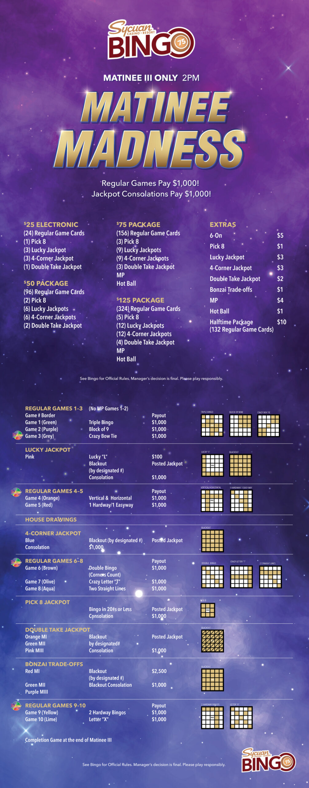 Matinee Madness Saturday, April 4 | Matinee III Only • Regular Games pay $1,000 • Jackpot Consolations pay $1,000 BUY-INS & LINEUPS SYCUAN CASINO MORE PROMOTIONS Table Games Bonus Spin Blackjack LEARN MORE Complimentary Sycuan App Complimentary Sycuan Mobile App LEARN MORE Every Wednesday $5 Buck Wednesdays LEARN MORE On your Birthday! Happy Birthday! LEARN MORE VIEW ALL PROMOTIONS Gold† Membership Sign up for a Club Sycuan card today and you’ll automatically become a Gold cardholder. Platinum Membership When you earn 10,000 points* you’ll have access to all the casino benefits of the Gold card plus additional discounts at all our restaurants and more. Elite Membership Unlock even more casino rewards when you earn 65,000* points and receive Elite cardholder status. Diamond Membership Once you earn 200,000 points* you’ll receive cash back with as little as 2,000 points earned plus incredible offers & discounts. Black Membership Reserved for our top-tier points players who earn 500,000 points*. You’ll receive the best of the best when it comes to casino rewards. HINT: CLICK THE CARDS TO LEARN MORE JOIN THE CLUB SYCUAN GET A CARD. GET REWARDED. LEARN MORE ABOUT CLUB SYCUAN