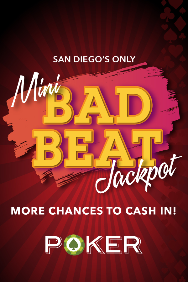 Mini Bad Beat Jackpot San Diego’s Only Mini Bad Beat Jackpot! More Chances to Cash In! Sycuan is the only poker room with a mini jackpot. The qualifier is Aces full of deuces through Aces full or Queens beaten by 4 of a kind, or better. The payout to the players are $599 for the losing hand, $401 for the winning hand and $100 for players seated at the table. Both cards must play. Cannot tie the board. SYCUAN CASINO MORE PROMOTIONS Table Games Bonus Spin Blackjack LEARN MORE Now - December 31 LEARN MORE On Your Birthday! Bingo on your Birthday LEARN MORE Now - December 31 LEARN MORE VIEW ALL PROMOTIONS Gold† Membership Sign up for a Club Sycuan card today and you’ll automatically become a Gold cardholder. Platinum Membership When you earn 10,000 points* you’ll have access to all the casino benefits of the Gold card plus additional discounts at all our restaurants and more. Elite Membership Unlock even more casino rewards when you earn 65,000* points and receive Elite cardholder status. Diamond Membership Once you earn 200,000 points* you’ll receive cash back with as little as 2,000 points earned plus incredible offers & discounts. Black Membership Reserved for our top-tier points players who earn 500,000 points*. You’ll receive the best of the best when it comes to casino rewards. HINT: CLICK THE CARDS TO LEARN MORE JOIN THE CLUB SYCUAN GET A CARD. GET REWARDED. LEARN MORE ABOUT CLUB SYCUAN