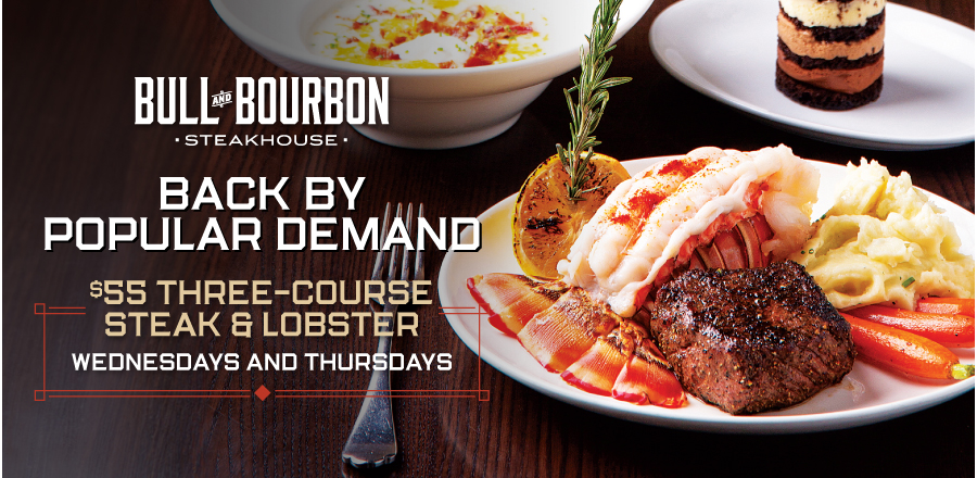 At Bull and Bourbon, reservations are accepted daily beginning at 5PM, with our last reservation Wednesday – Sunday, taken at 9:30PM. While reservations are highly encouraged, we will take all walk in guests based on availability. Reservations can be made by calling Bull and Bourbon during business hours at 619.659.3374 or via opentable.com.