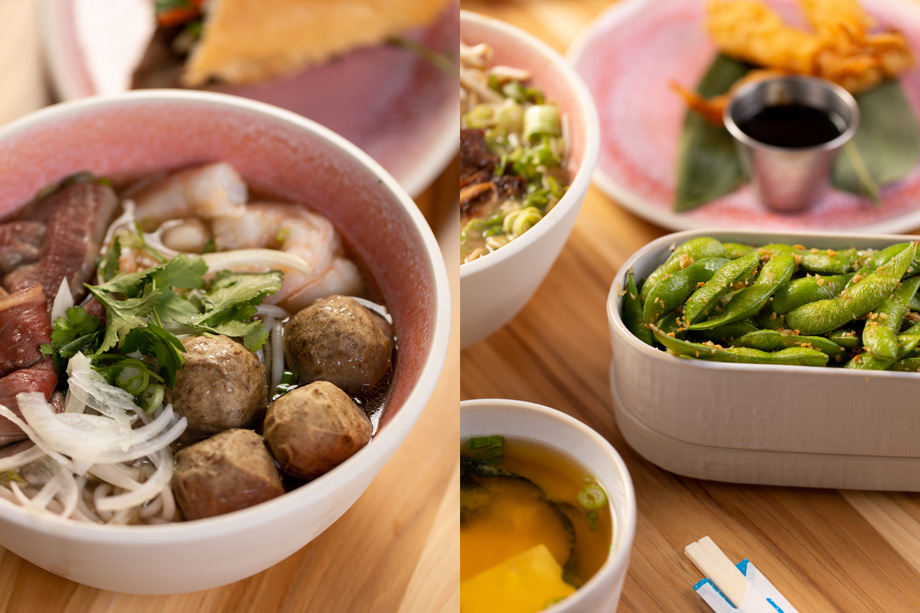 Pink Buddha is a casual dining restaurant that offers a fresh take on Pan-Asian cuisine featuring the eclectic influences of China, Thailand, Japan, Vietnam, the Philippines and Hawaii. The extensive chef-crafted menu boasts a mix of delicious items including noodles, fried rice, pho, dim sum, Bahn Mi sandwiches, stir fry dishes and more!